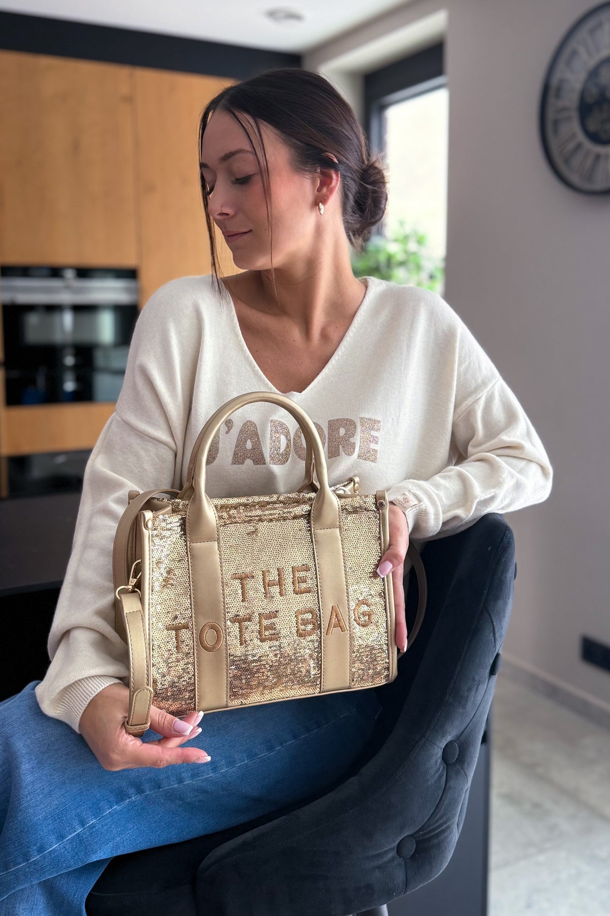 Sac " Tote Bag" Sequin Doré Petit Modèle